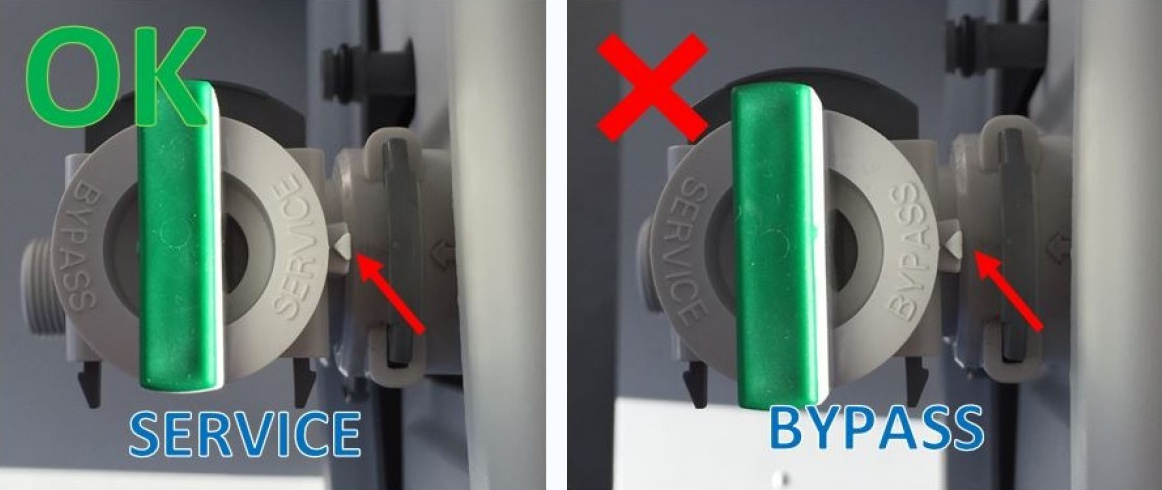 Om de Talent waterontharder in te schakelen, dient u de knop van BYPASS naar SERVICE/OPEN te draaien.